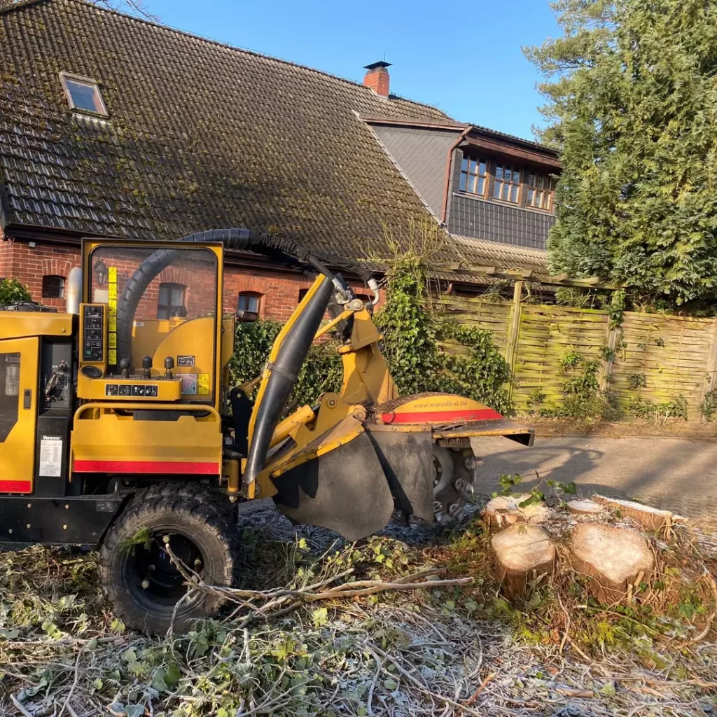 Mit der Wurzelfräse entfernen wir das Fundament Ihres Baumes – auch wenn wir ihn nicht selbst gefällt haben. Damit Ihr Garten wieder eben ist und der neuen Gestaltung nichts im Wege steht.